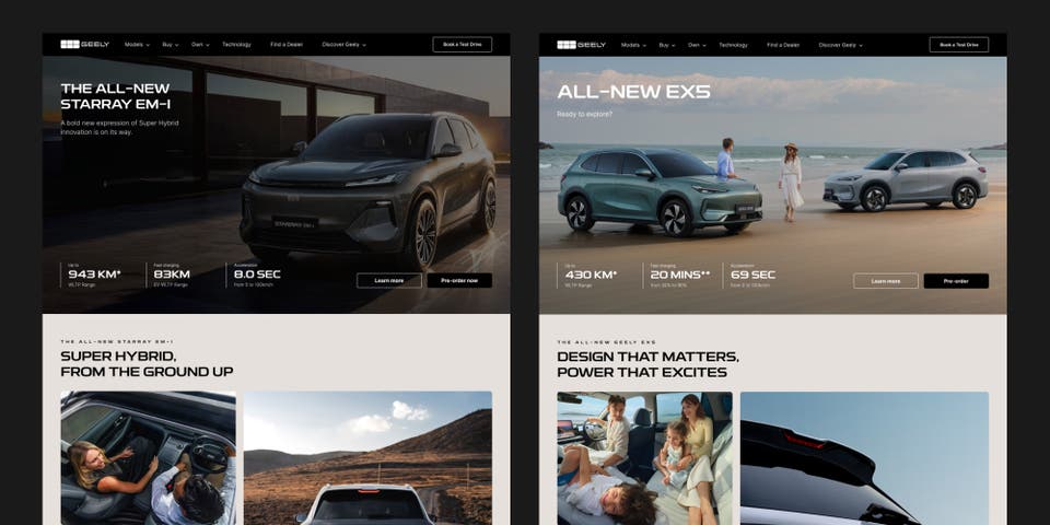 To ensure scalability, we built a modular design system and headless architecture that allowed new models, pages and campaigns to be launched rapidly without compromising quality. This reusable foundation enabled speed and consistency, and has since been referenced by other regions as a blueprint for future Geely digital rollouts.