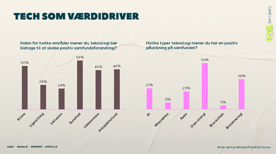 Og forbrugerne er med på bevægelsen. I vores PULSE26-survey kan vi se, at over halvdelen af danskerne mener, at brands bør bruge teknologi aktivt til at skabe positive samfundsforandringer (Kilde: dentsu/Bilendi PULSE26 Survey).