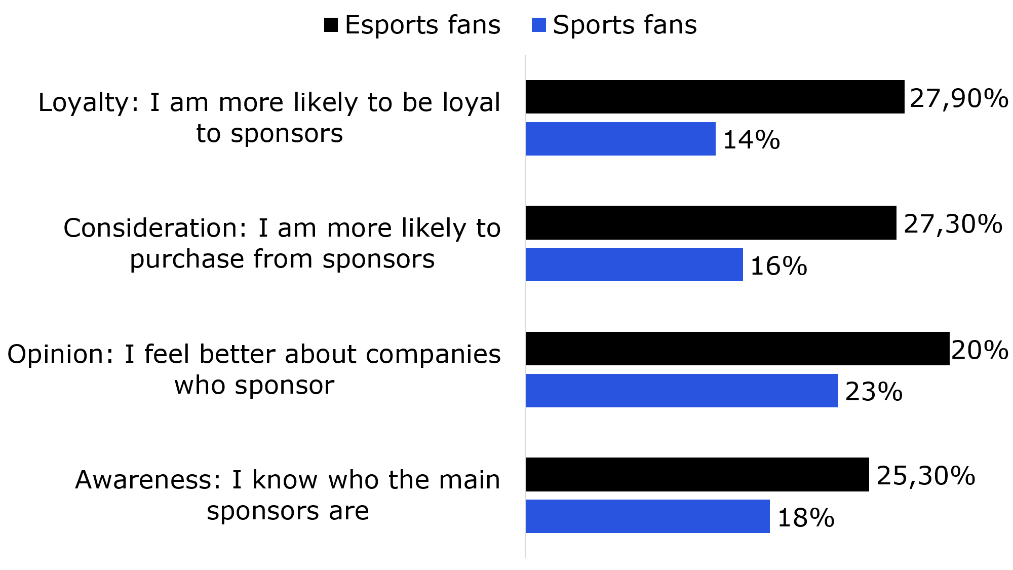 Esport-fans har et højt recall, men er samtidig storforbrugere af ad-blockers. Til gengæld sætter gamere stor pris på de virksomheder og brands, der hjælper sporten på vej. Det kan være gennem de store præmiesummer, som gør det attraktivt at spille professionelt, og dermed giver gamingfans en masse kvalitetsunderholdning, eller via kapital til at afholde store live events, som betyder meget for sporten.