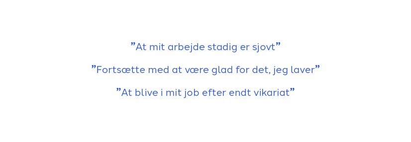 Dog byder arbejdslivet ikke kun på bekymringer, og deltagerne gør sig også mange forhåbninger om deres arbejdsliv i 2020. Igen er der en tendens til, at deltagerne først og fremmest tænker på det, som er tæt på dem selv: