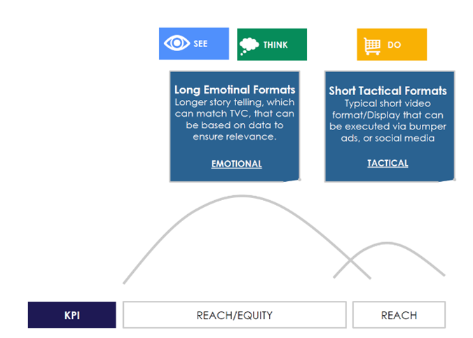 Som nævnt tidligere dækker den emotionelle tilgang over formater, der kan det samme som TV. Det vil sige lange højkvalitetsformater med høj viewability, som ikke kan skippes. De rationelle formater dækker over korte formater med en taktisk afmelding, der typisk kan skippes.