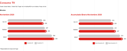 Termina el mes de noviembre y mientras España está sufriendo de lleno la segunda ola del COVID-19, el consumo de televisión ha vuelto a crecer respecto al mismo mes del año anterior. Sin duda, las restricciones a la movilidad impuestas en una parte importante del territorio han contribuido a que los españoles continuemos dedicando más tiempo al visionado de televisión.