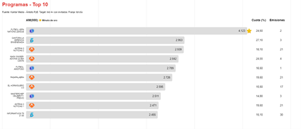 Dentro de los programas más vistos, nuevamente el futbol volvió a colgarse el oro gracias al partido disputado el 17 de noviembre entre España y Alemania, que contó con más de 4 millones de televidentes. El encuentro llegó a rozar los 6 millones cuando registró el minuto de oro de la jornada.