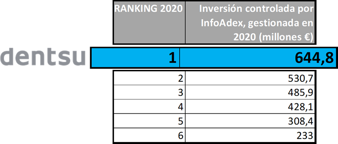Dentsu sigue liderando el ranking de agencias por inversión publicitaria gestionada por tercer año consecutivo