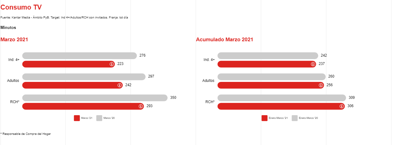 El target de Responsable de Compra del Hogar (RCH) consumió casi 5 horas diarias de TV