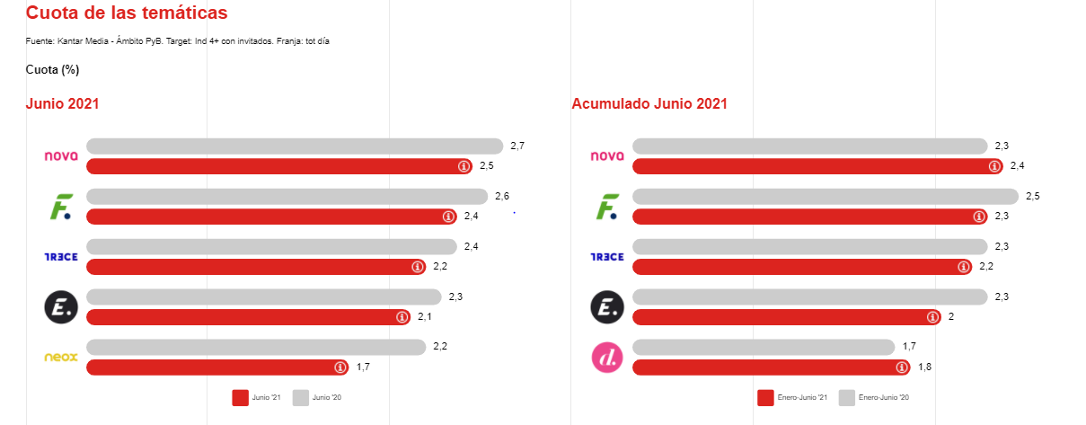 Entre las temáticas, Nova encabeza el ranking aunque todas ellas pierden ligeramente share frente al pasado año.