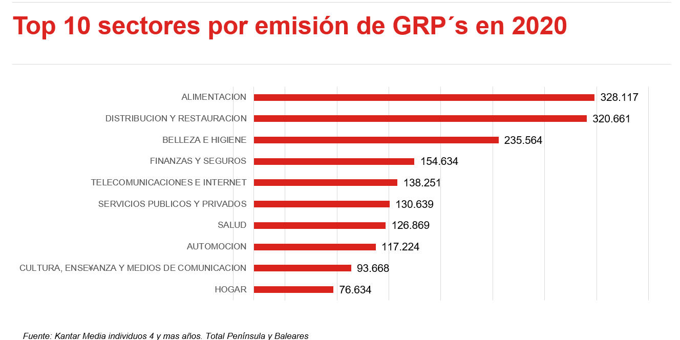 Por el lado contrario, destacan Finanzas y Seguros, que crece su presión un 2,4% este año hasta alcanzar los 154.000 GRP’s, y el sector Energía, que aumenta un 26%.