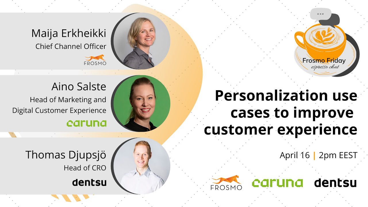 Näistä ja muista teemaan liittyvistä aiheista keskusteltiin Frosmo Friday Espresso chat -tapahtumassa. Me Carunan digitalisaatiohankkeen kumppanina olimme mukana puhumassa muun muassa siitä, miksi asiakaskokemuksen optimointiin tarvitaan asiakassegmentoinnin tarkkaa suunnittelua ja uskallusta validoida hypoteeseja unohtamatta kuitenkaan kehittämisen ketteryyttä ja asiakastarpeiden syvällistä ymmärtämistä.