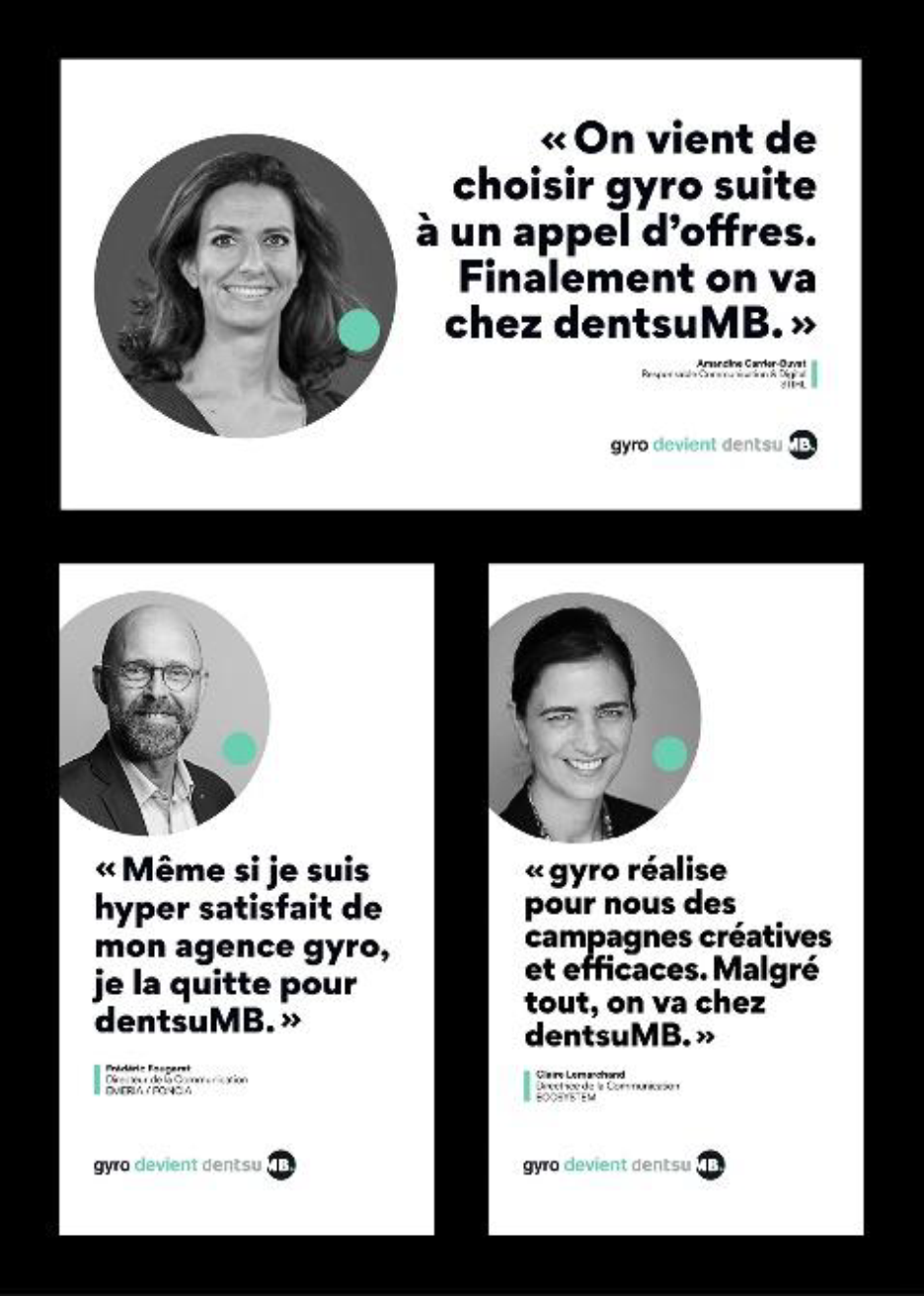 - Claire Lemarchand, Directrice de la communication d’ECOSYSTEM : « gyro réalise pour nous des campagnes créatives et efficaces. Malgré tout, on va chez dentsuMB. » ;