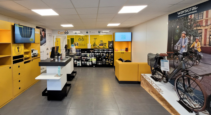 - Un espace destiné à la vente de vélos à assistance électrique et de trottinettes électriques