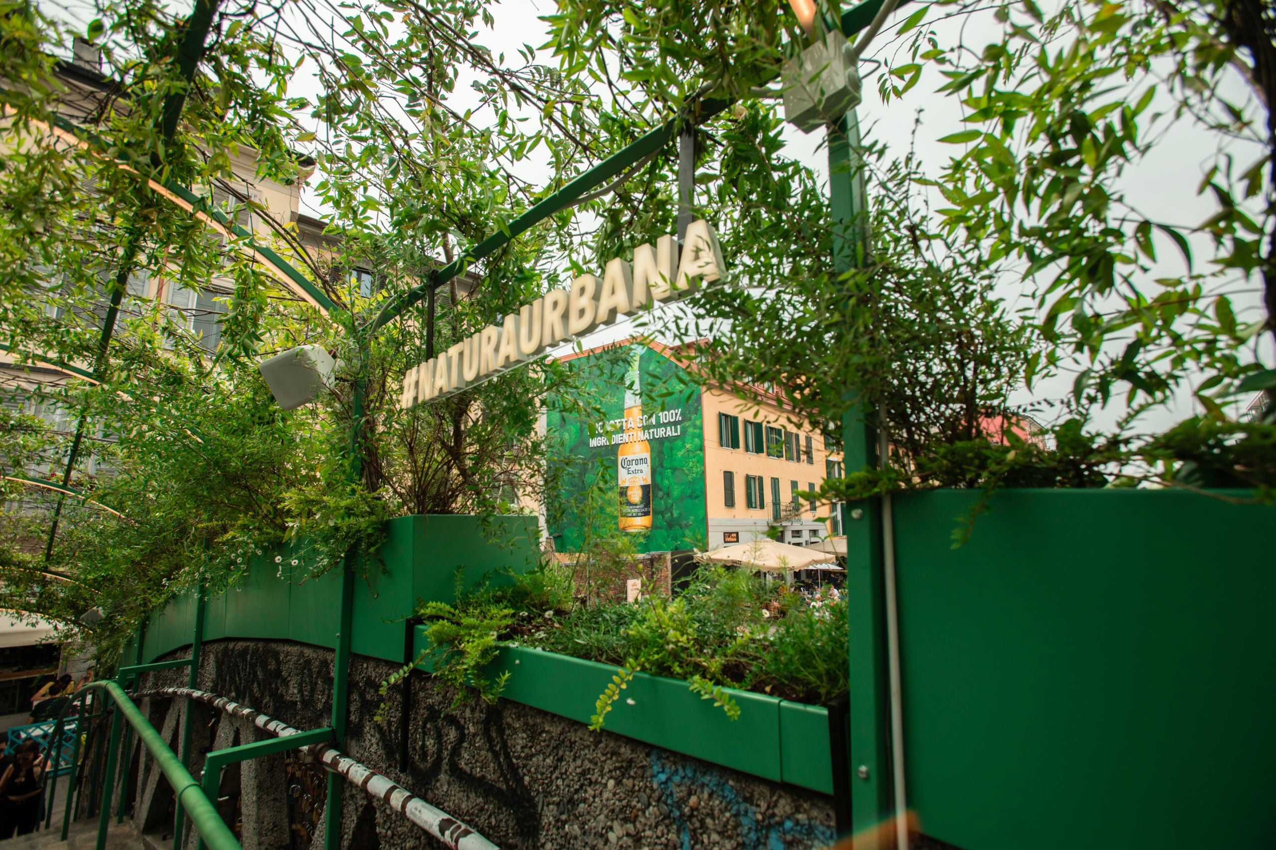 Lungo il Naviglio Grande di Milano, per nove giorni, il Ponte Alda Merini ospiterà una speciale installazione green che mira ad avvicinare i visitatori alla bellezza e alla purezza incontaminata della natura. Rivestita interamente di verde, si tratta di una speciale experience multisensoriale che coinvolgerà tutti i passanti con effetti sonori che li culleranno come se si trovassero in mezzo alla natura. Inoltre sul Ponte è installato un conta alberi: per ogni 500 persone che lo attraverseranno, Corona si impegnerà a piantare un albero nelle zone dell’hinterland milanese di Trezzano e Gaggiano. Al termine dell’experience tutte le piante presenti sull’istallazione godranno di una seconda vita e verranno ricollocate nell’area del Municipio 6. L’obiettivo è aumentare gli spazi verdi in alcune aree di Milano.