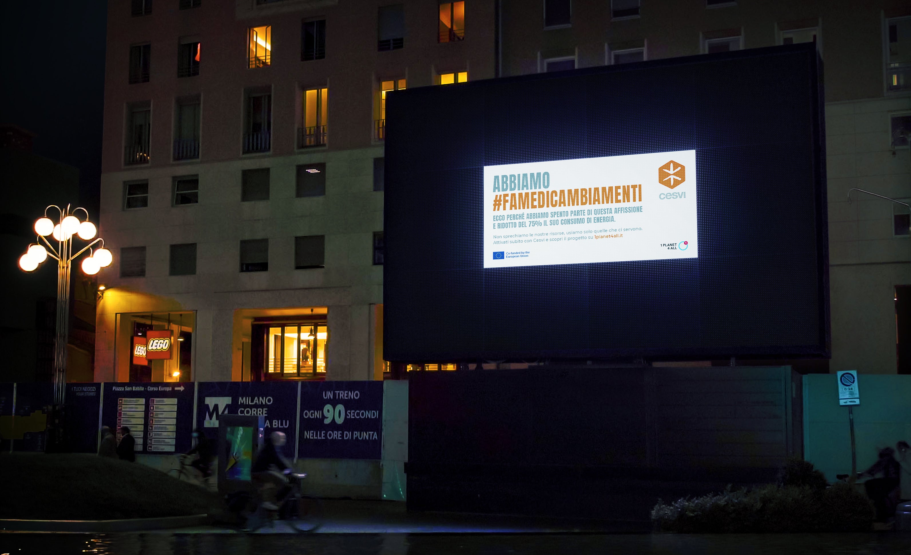 The Big Now/mcgarrybowen accende con Fondazione Cesvi i riflettori sulla crisi climatica, spegnendo una maxi affissione