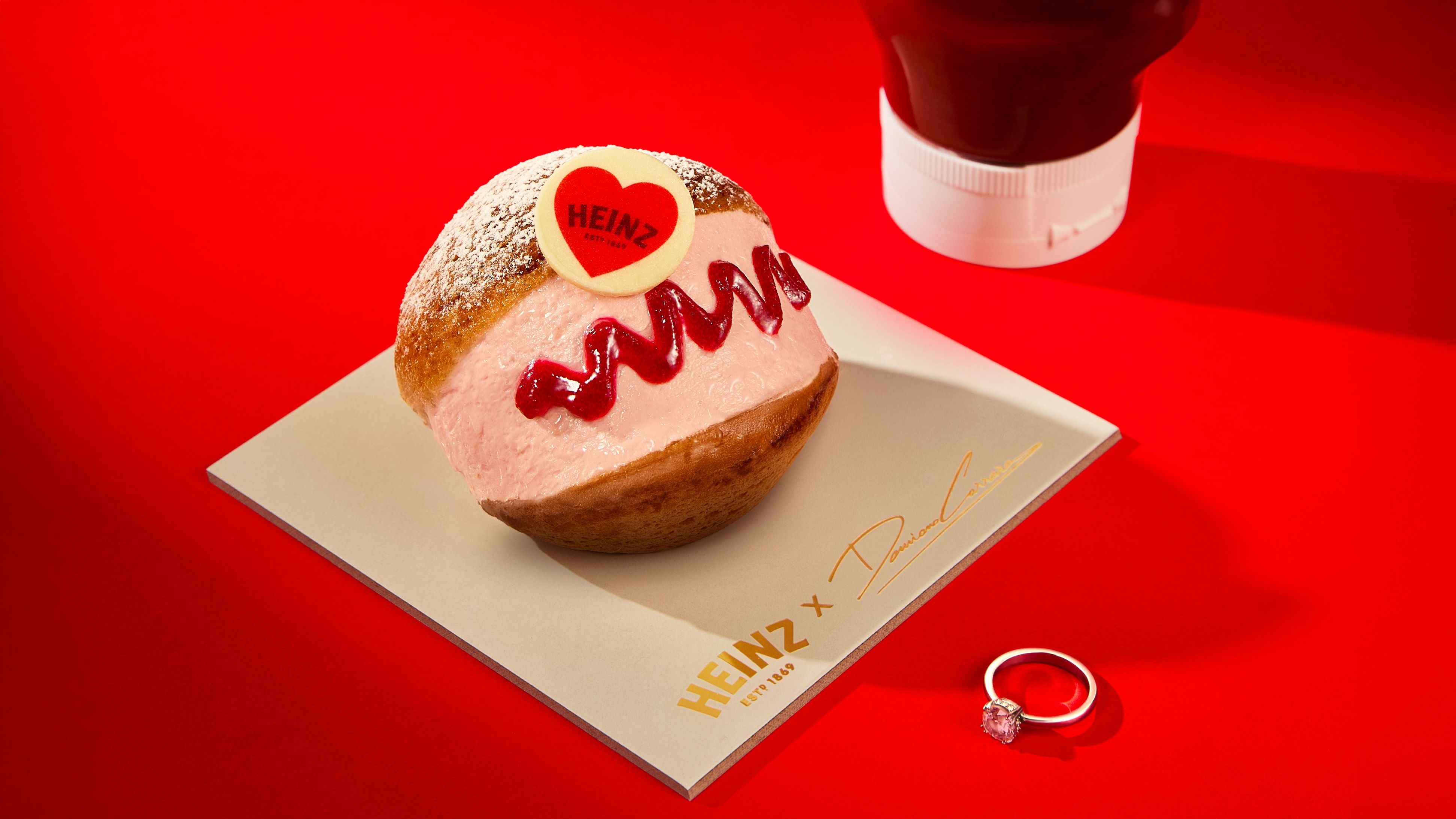 Il progetto ha riportato alla luce la tradizione del maritozzo, antico dolce donato come promessa d’amore con una sorpresa nascosta al suo interno. Heinz ne ha reinterpretato il significato sostituendo il gioiello con il suo prodotto più iconico, l’Heinz Tomato Ketchup, trasformandolo nel cuore inatteso della ricetta firmata da Carrara.