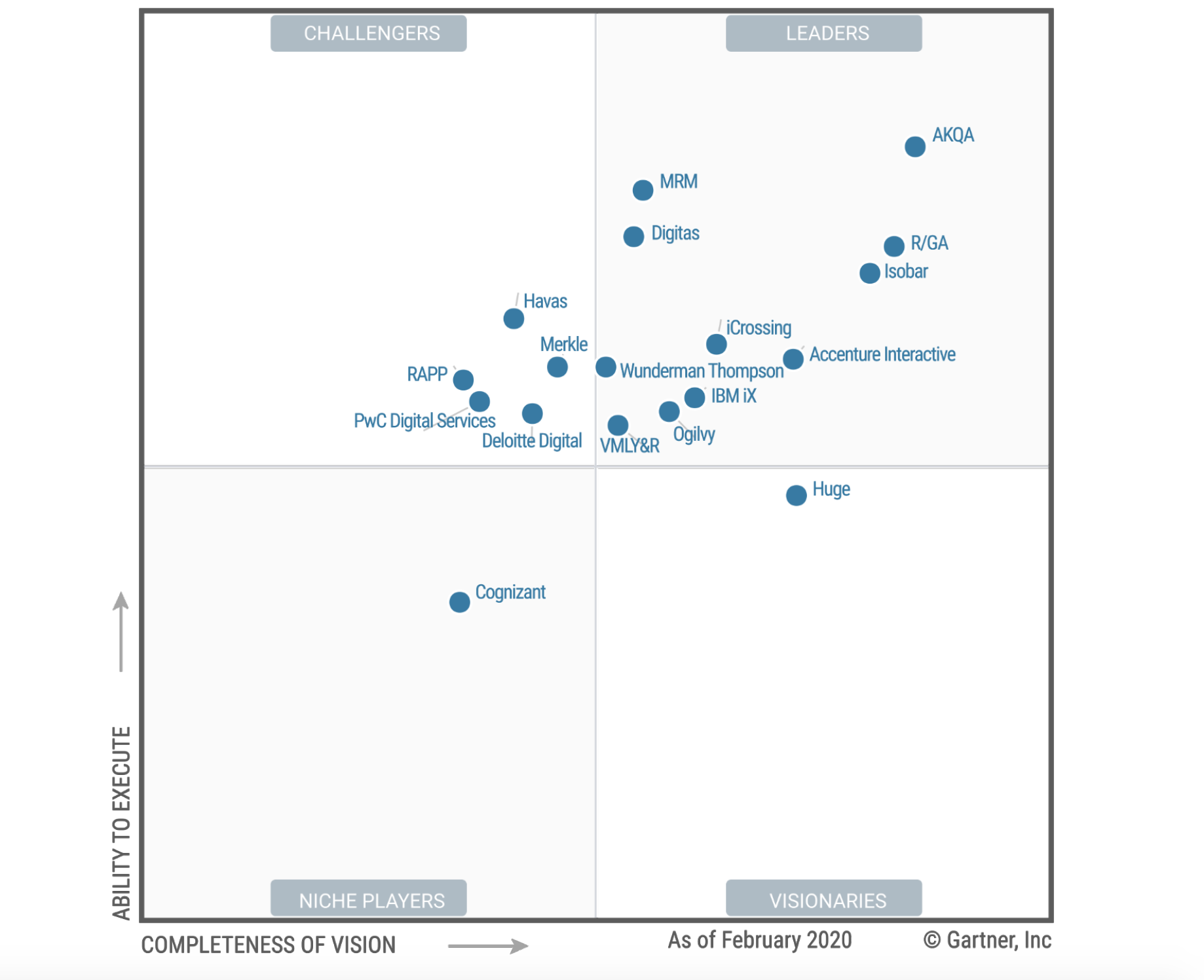 Fonte: Gartner, Magic Quadrant for Global Marketing Agencies, Jay Wilson, Ewan McIntyre, Laurel Erickson, 30 Marzo 2020.