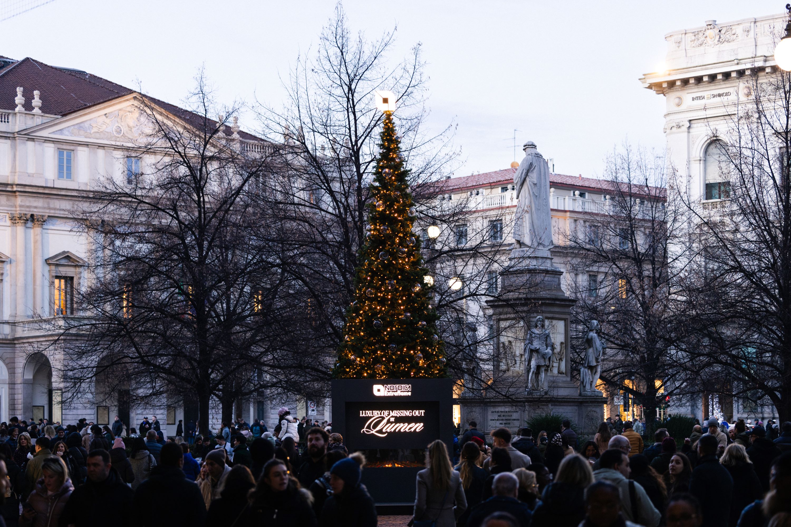 La campagna vive il suo culmine nel periodo natalizio (dal 6 dicembre al 6 gennaio) con LUMEN YOUR CHRISTMAS, un’installazione spettacolare realizzata in Piazza della Scala.