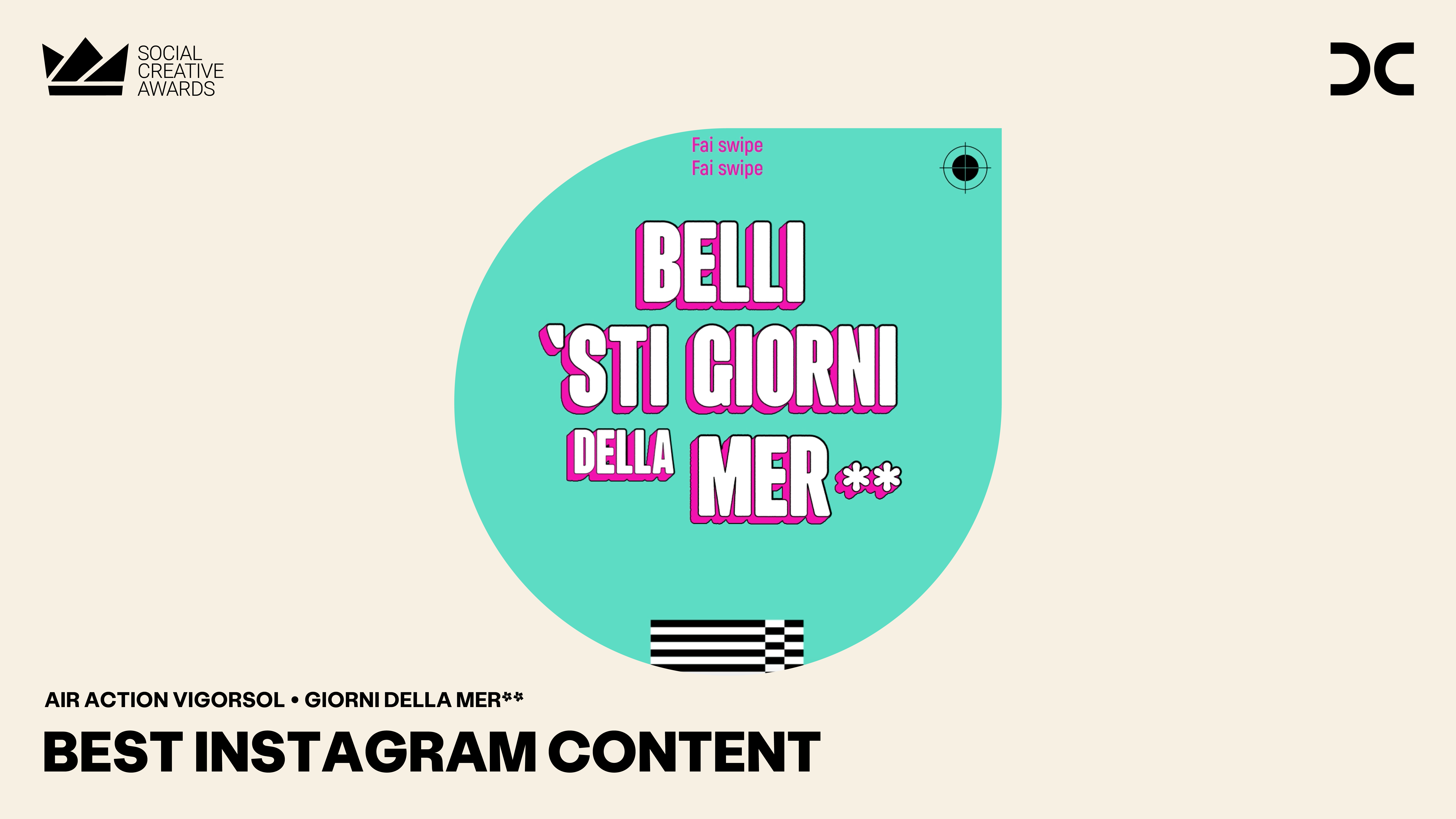 Nel corso della cerimonia di premiazione che si è svolta nel pomeriggio di venerdì 10 marzo, la giuria dei Social Creative Awards, composta da professionisti di aziende e agenzie, ha assegnato all’agenzia DENTSU CREATIVE altri due riconoscimenti tra cui il “Best Instagram Content” per il carousel “Giorni della Merla” di AIR Action Vigorsol. Contenuto che, in linea con il posizionamento “Keep It Fresh” del brand di Perfetti Van Melle, ribaltava il classico paradigma delle celebration da calendario sui social, rendendo questa tipologia di contenuti un tratto distintivo della comunicazione della marca.