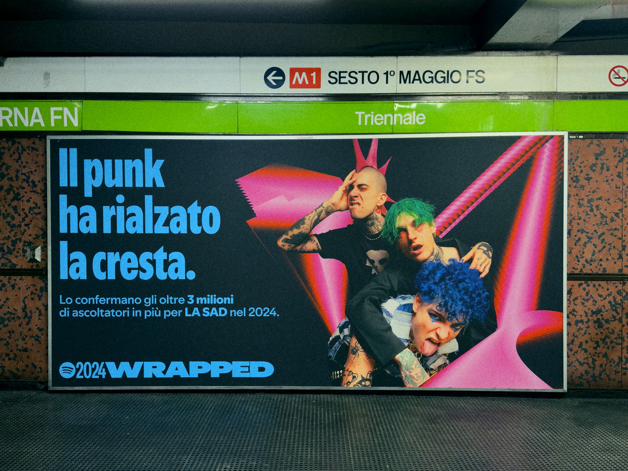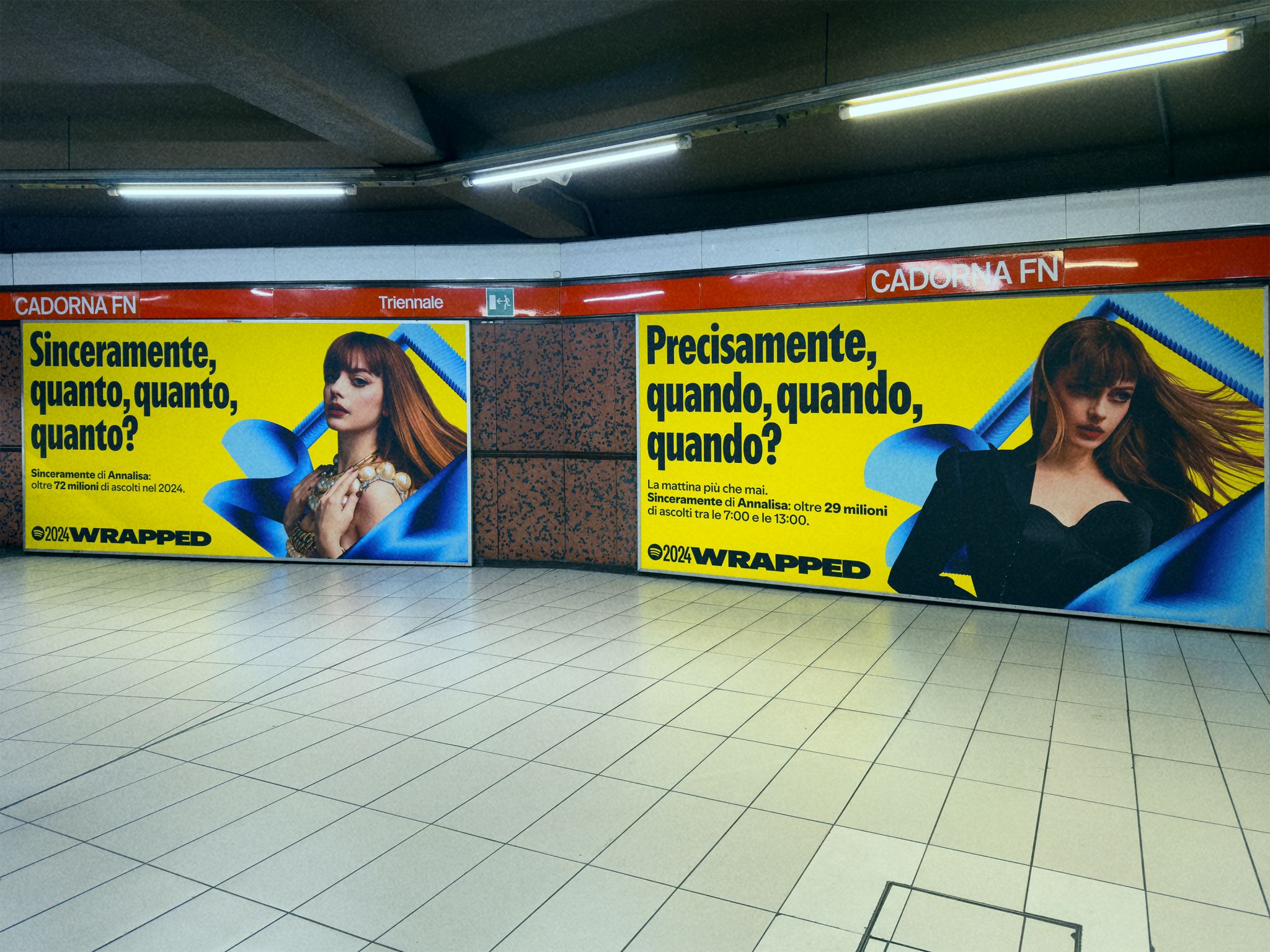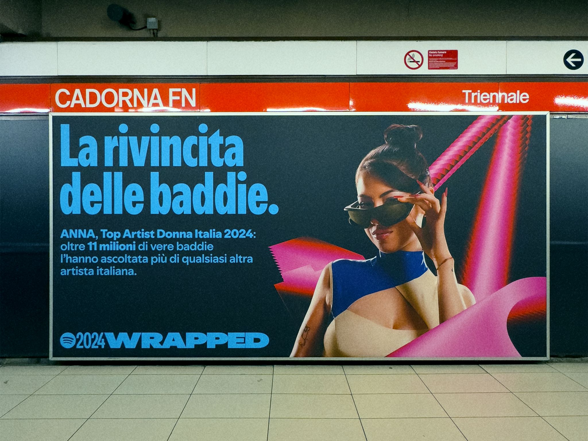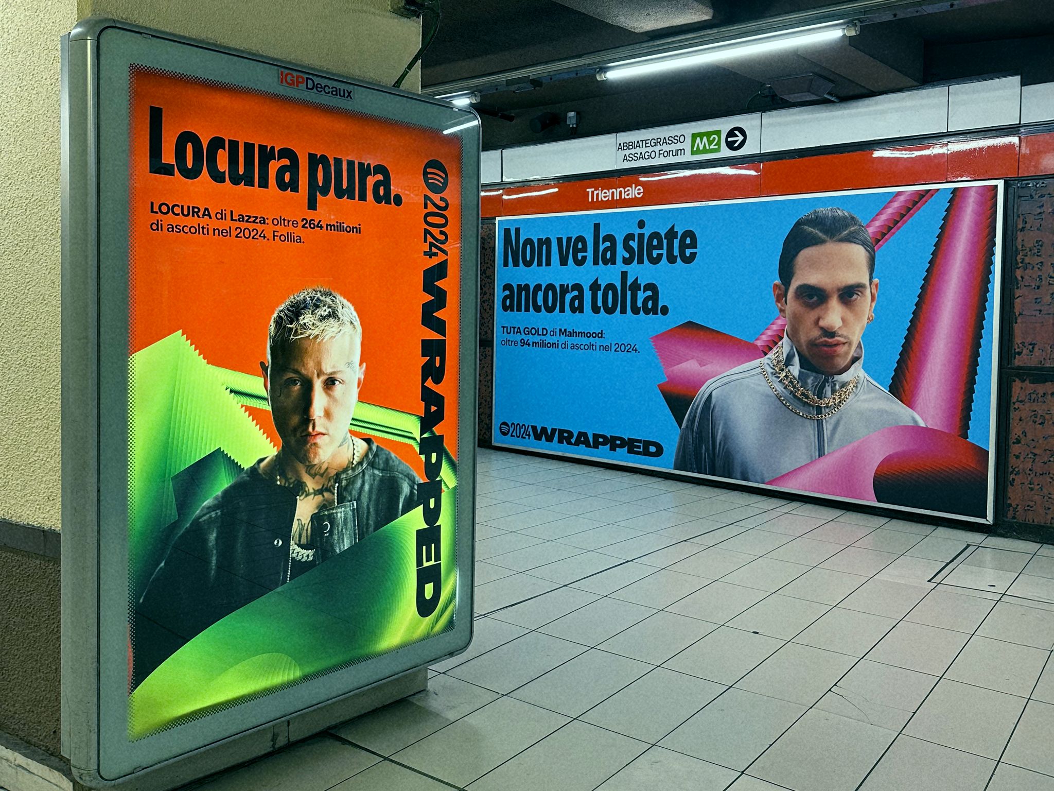 Le affissioni in tutte le aree della metropolitana vedono protagonisti i top e le top player dell’industria discografica e del mondo dei podcast e celebrano i loro successi con copy ad che riprendono il tono di voce fresco e ironico di Spotify, dati di ascolto, e insight legati ai trend e alle abitudini di ascolto.