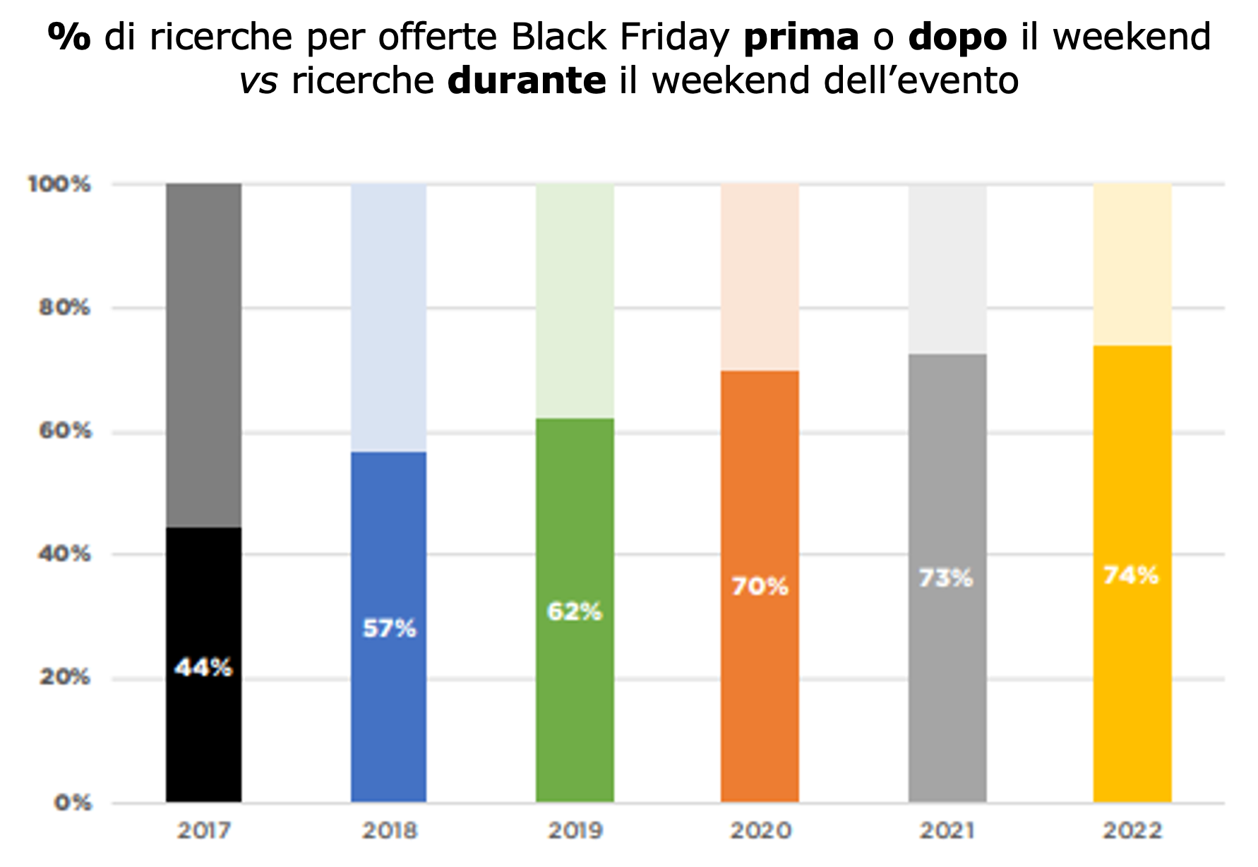 Come già evidenziato lo scorso anno, i consumatori italiani non effettuano acquisti di impulso durante questo periodo, ma fanno scelte molto consapevoli, iniziando la ricerca con grande anticipo, arrivando pronti e con le idee chiare.