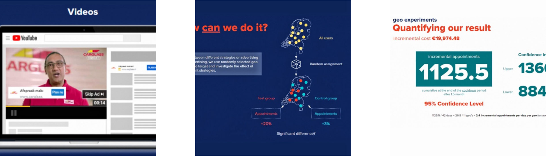 In fact, a total of 1,125 more appointments could be attributed directly to the YouTube campaign. All other variables were equal. The geo-experiment clearly demonstrated the significant effect of the YouTube campaign on the number of online appointments. Moreover, the result paved the way for us to run multiple pilots for Carglass in 2023 to validate this approach even further.