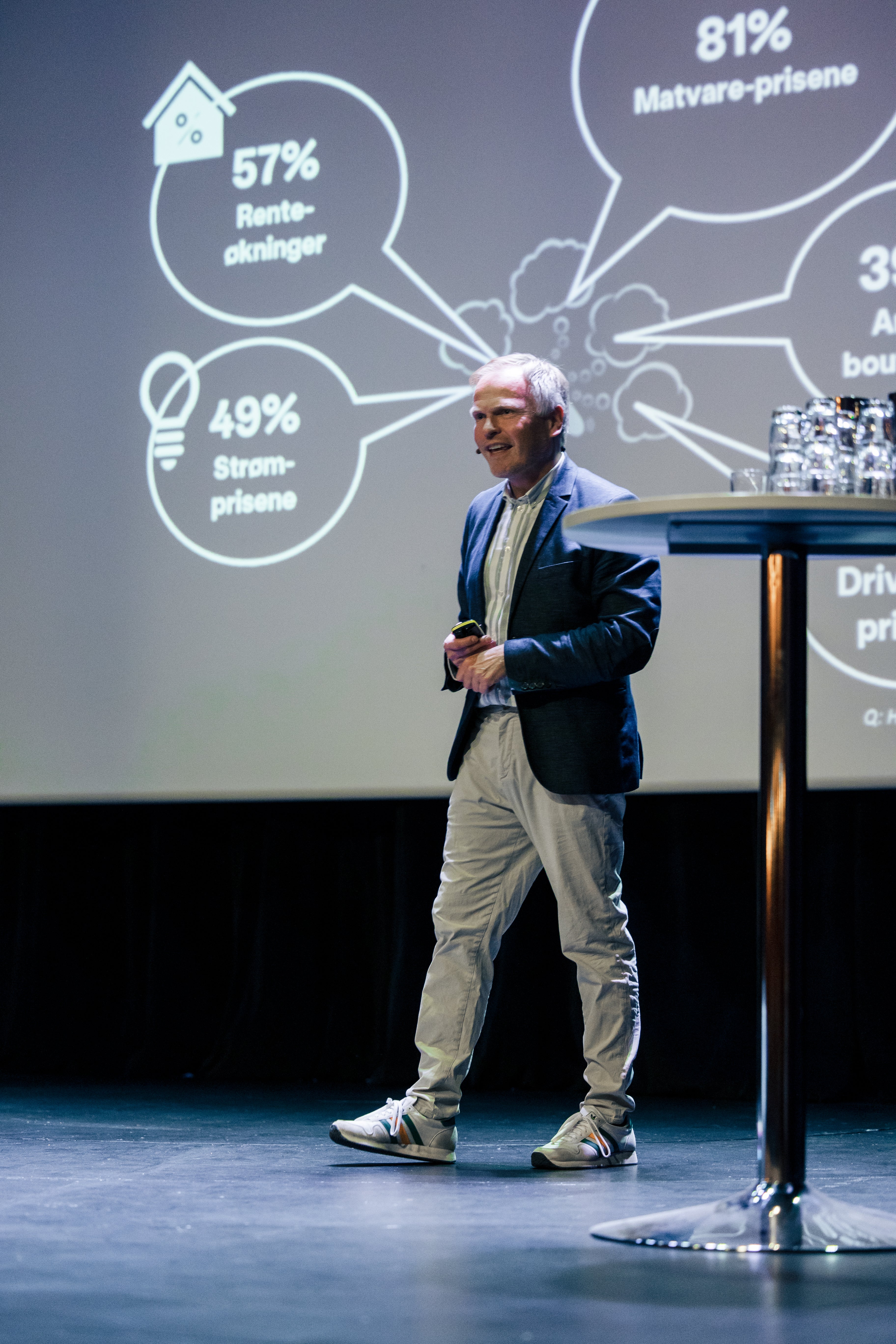 Vi går gjennom en stresstest av husholdningens økonomi. Flere og flere justerer privatøkonomien og 30-40 % dropper eller utsetter kjøp. Vi kutter ned på uteliv, mat, reise og hjem, mens digitale abonnementer beholdes. Folk handler mer rasjonelt og velger billigere varianter. Samtidig som vi kjøper mindre, kjøper vi også bedre kvalitet. Vi bruker lengre tid på hvert kjøp. Det gjør at vi må ha mer tålmodighet med kundene våre og betrygge dem om at de gjør et godt kjøp. Samtidig som vi ser at halvparten av oss justerer på pengeforbruket, så er det jo også en halvpart som ikke gjør det. Halvparten av oss lever like godt som før eller til og med enda bedre.