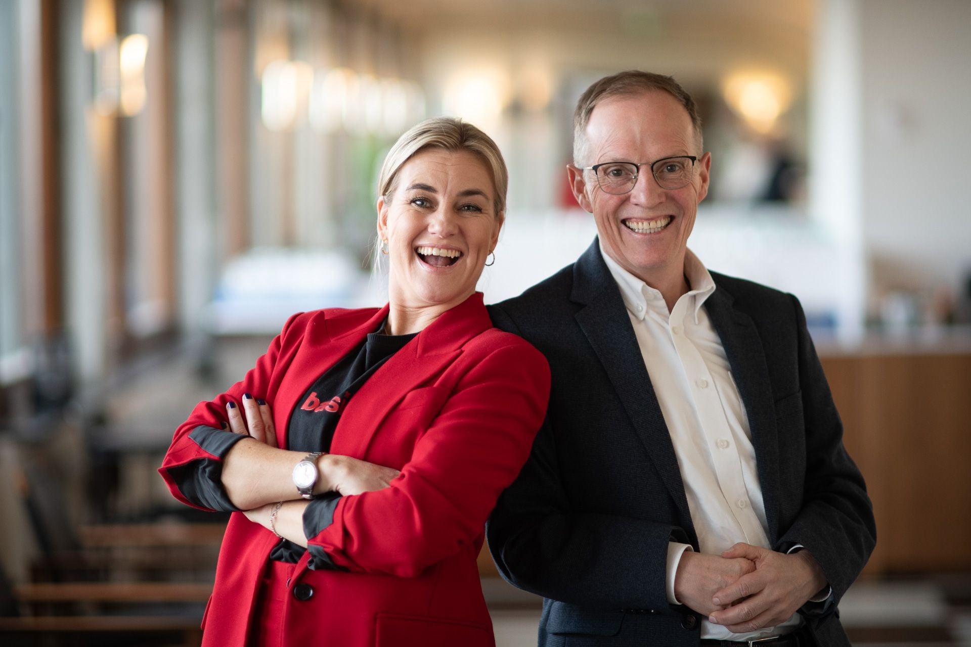 Margrethe Wam Solvang, daglig leder i Dentsu Creative og Espen Grimmert, fagansvarlig for bærekraft i dentsu, smiler av den offensive holdningen norske reklamekjøpere har til bærekraft.