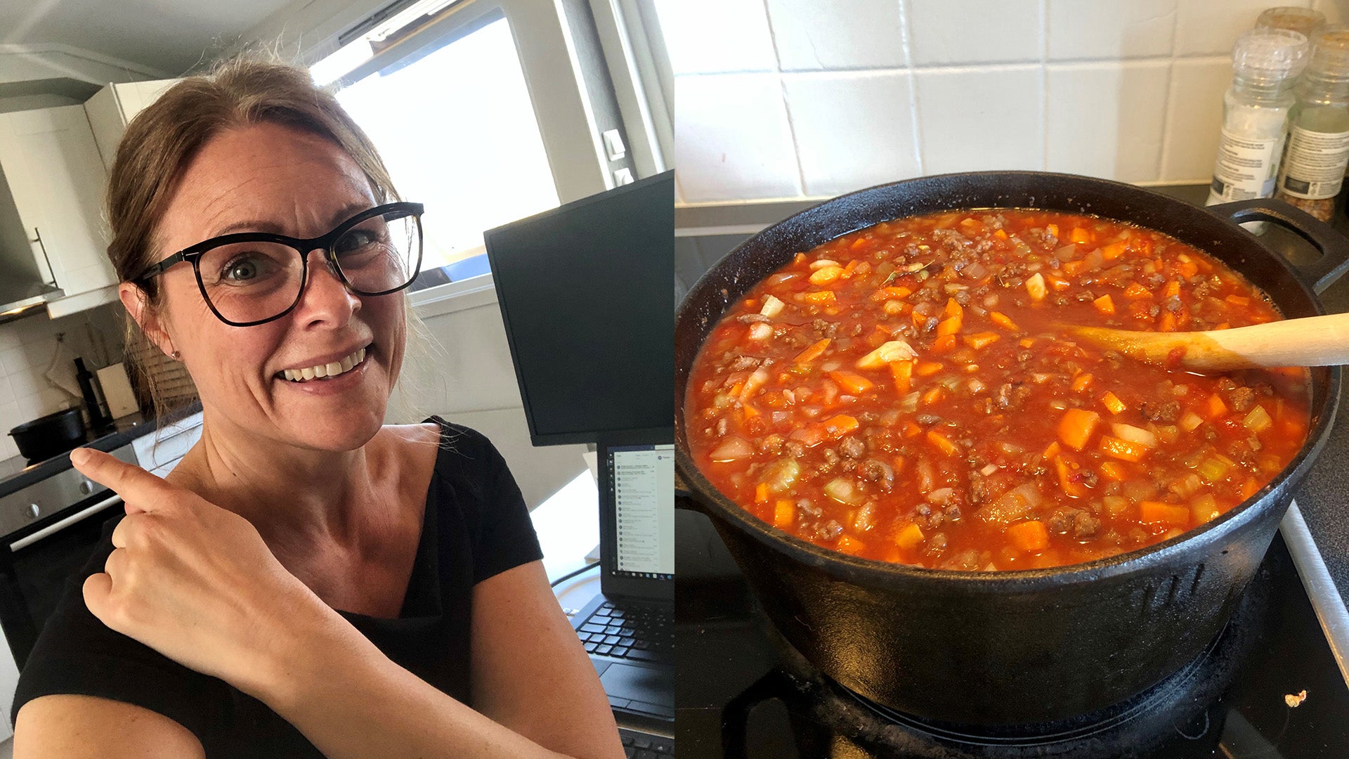 Når man er så mye hjemme som vi er nå, rekker jeg jo å gjøre ting jeg ikke rekker (eller orker) til vanlig. Som å lage hjemmelaget bolognese (dokumentert med bilde), som skal koke i 100 år. Det er sikkert sånn som helt normale mennesker gjør ellers, men for de som kjenner meg godt vet de at jeg ikke lever opp til Brimi som etternavn – jeg burde heller hete Toro. Så vi spiser nok både sunnere og mer hjemmelaget mat i COVID-tider. Det er bra. Og så spiser vi flere måltider sammen. Det er best. Mer kvalitetstid med familien er definitivt en av fordelene med å jobbe remote.