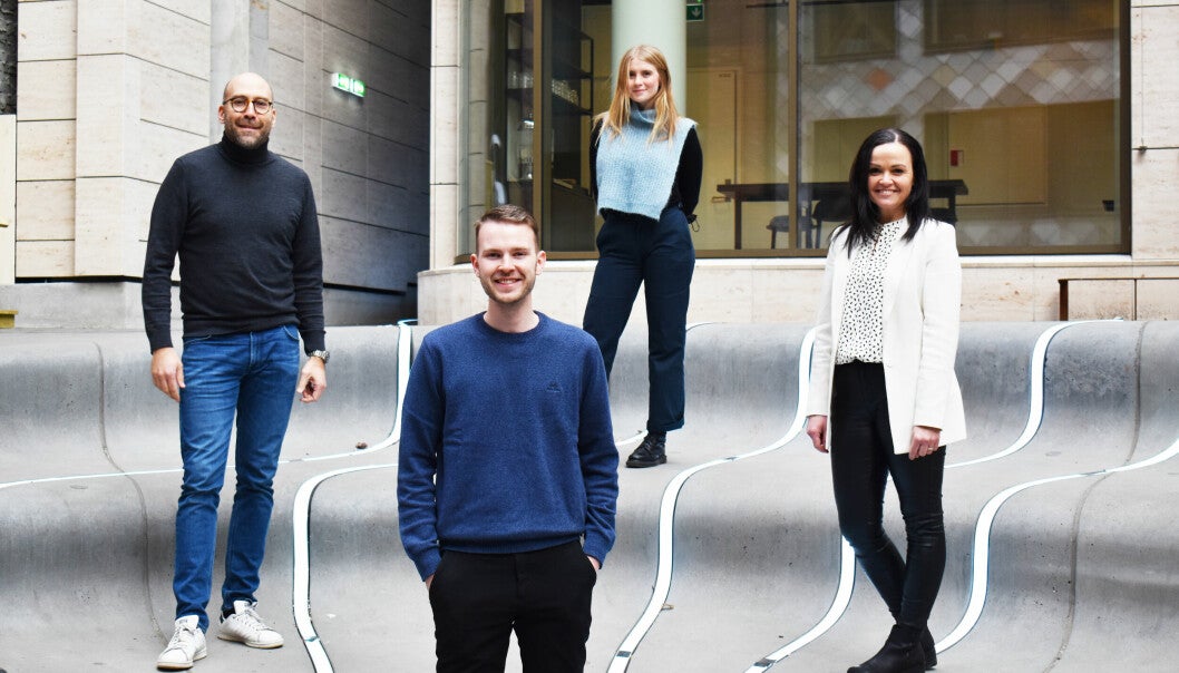 Byråleder Michael Legendre (f.v) er fornøyd med byråets siste ansettelser. F.v. Sondre Bjørge Sillerud, Agnes-Maarja Tero og Annik M. Grundetjern.