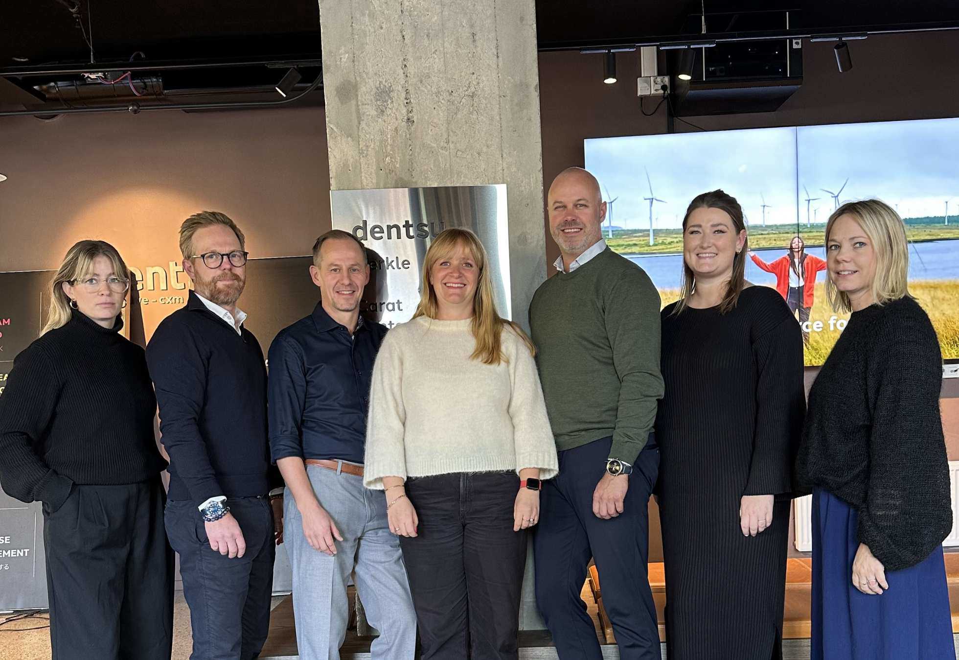 Fortsetter samarbeidet: Fra venstre: Kaja Gilje Sekse (Dentsu), Eirik Bryn (Norwegian), Tomas Tomasi (Norwegian), Kristina Church (Dentsu), Stian Jansen (Dentsu), Madeleine Røsnæs Dentsu) og Karianne Haaland (Norwegian).