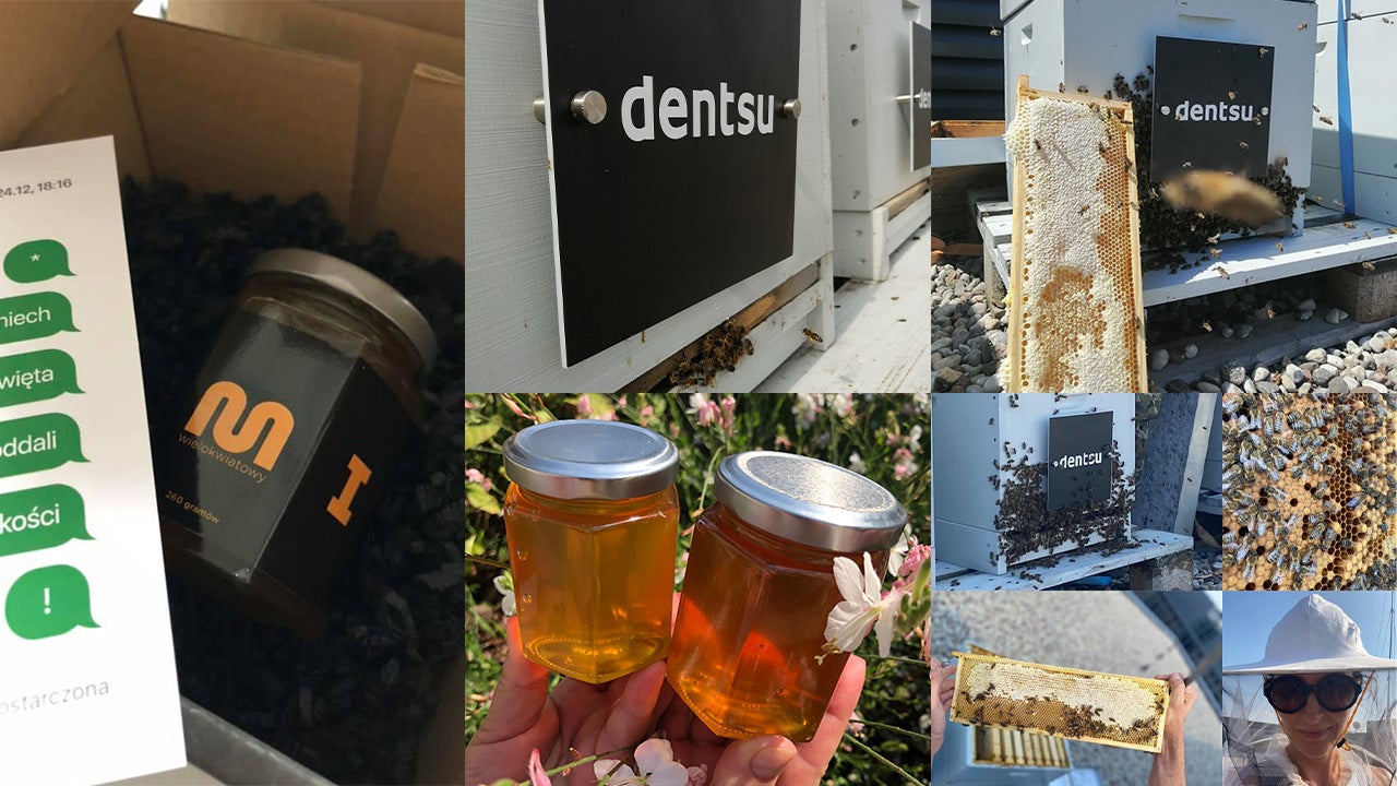 - Posiadamy własną pasiekę na dachu biura: „Bee dentsu”. Co roku setki słoików pozyskanego miodu wielokwiatowego trafiają do klientów i partnerów w ramach prezentów świątecznych oraz do pracowników w ramach różnych wewnętrznych aktywności.