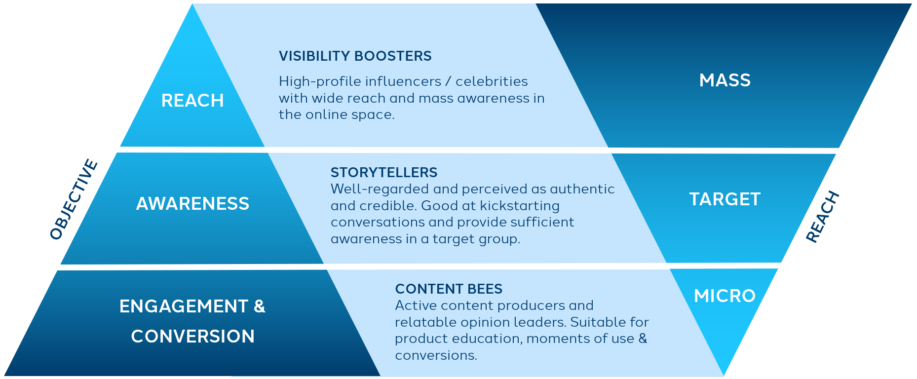 We in dentsu usually segment influencers to different buckets: Celebrities, macro influencers, content creators and micro-influencers. All have a role in this scene, all are needed to drive specific objectives in the funnel, and all can have separate KPI’s to influence the bottom line.