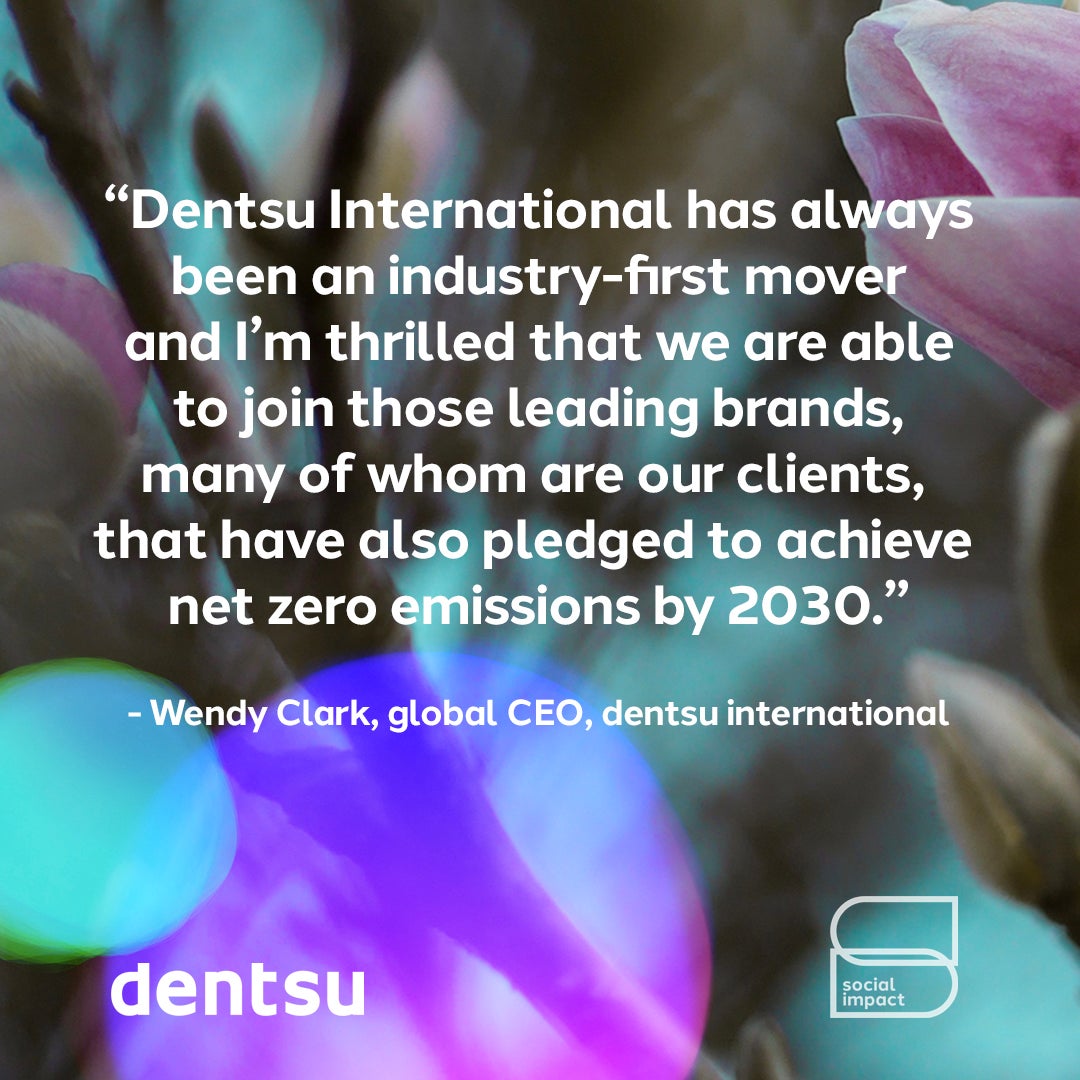 “Building on our recent achievement of powering the company on 100% renewable energy, we are committed to a future of renewable electricity and, where emissions are unavoidable, certified greenhouse gas removal projects. Dentsu International has always been an industry first-mover and I’m thrilled that we are able to join those leading brands, many of whom are our clients, that have also pledged to achieve net zero emissions by 2030.”