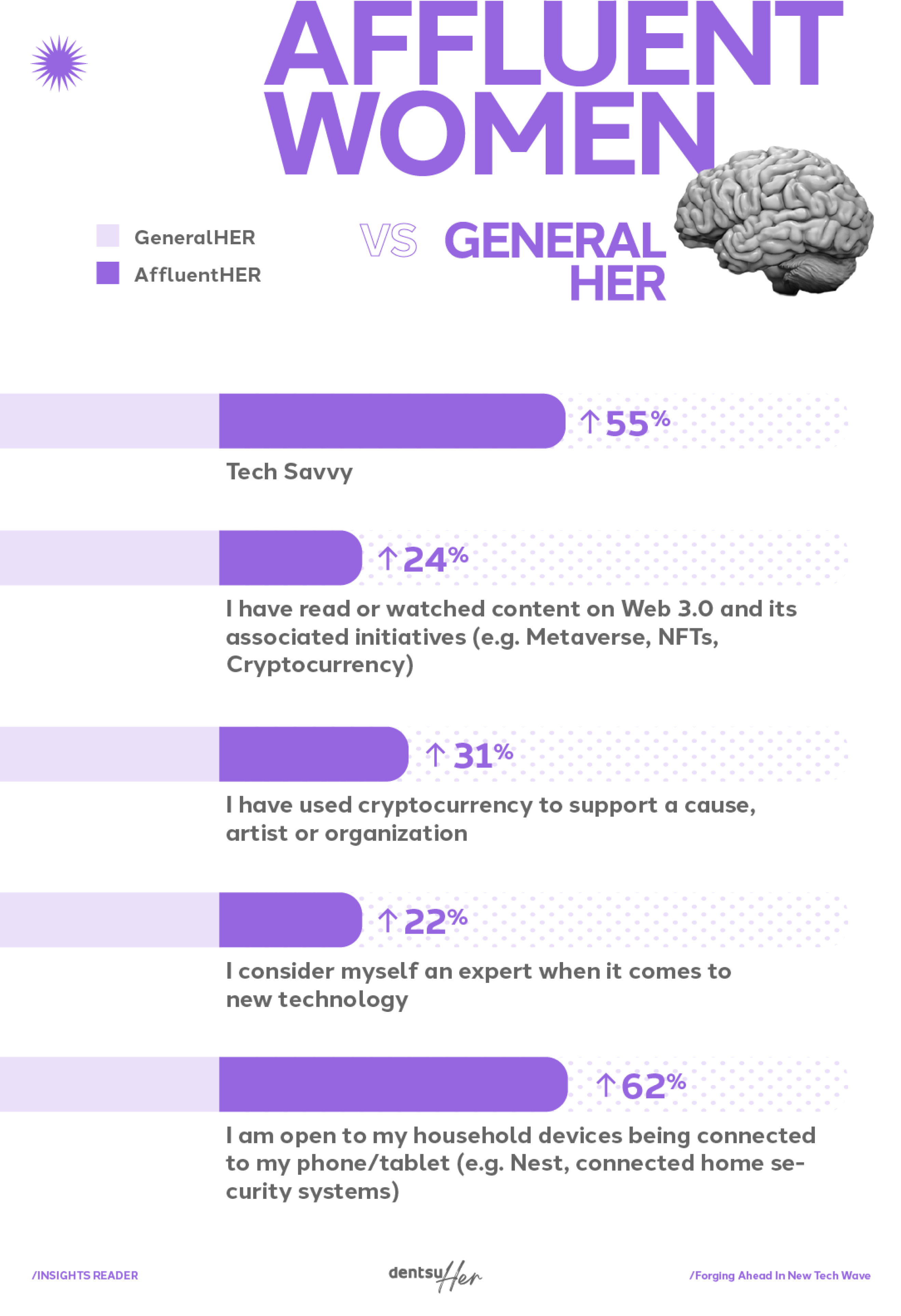 They are more open to new technology such as smart home, cryptocurrencies, metaverse and web3, more willing to experiment, and more convinced that technology can enhance their experiences.