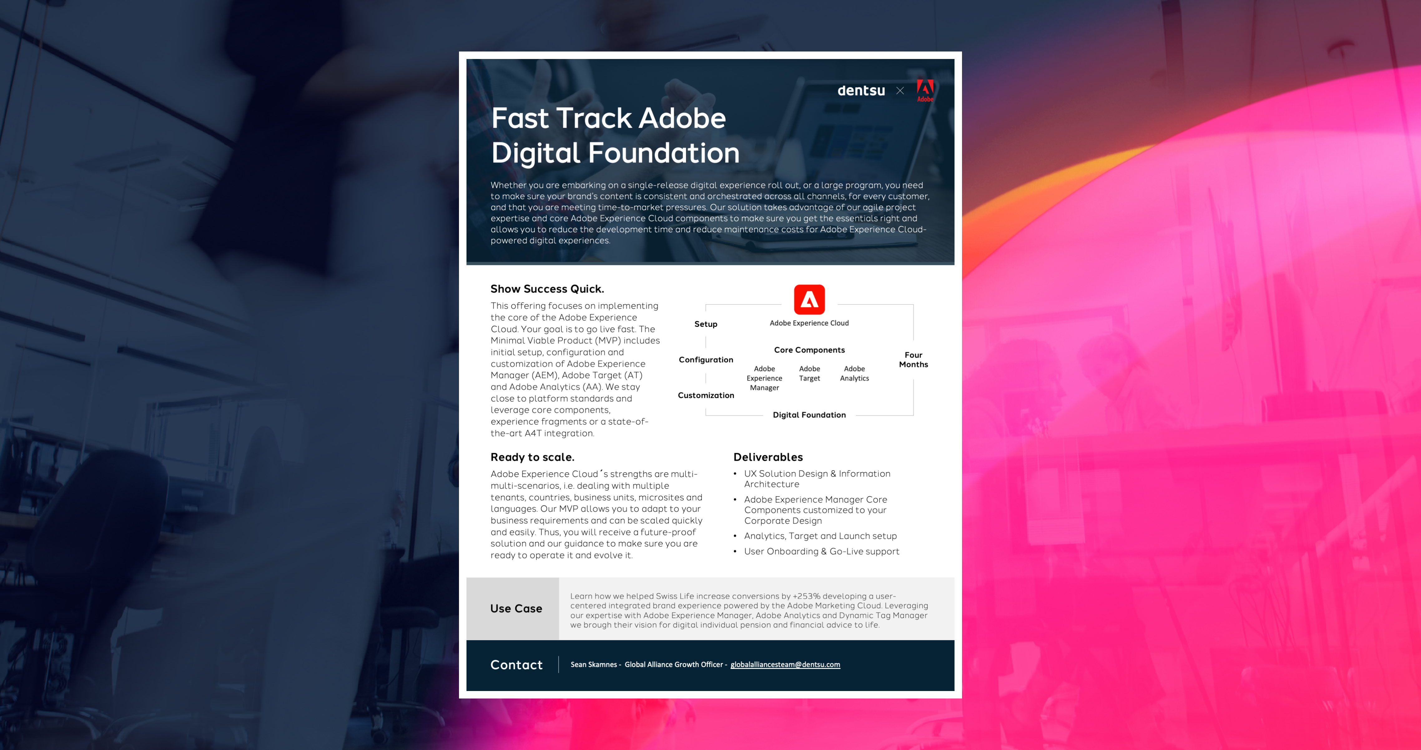 This solution allows brands to speed up development time and reduce maintenance cost of digital experiences powered by  the Adobe Experience Cloud.
