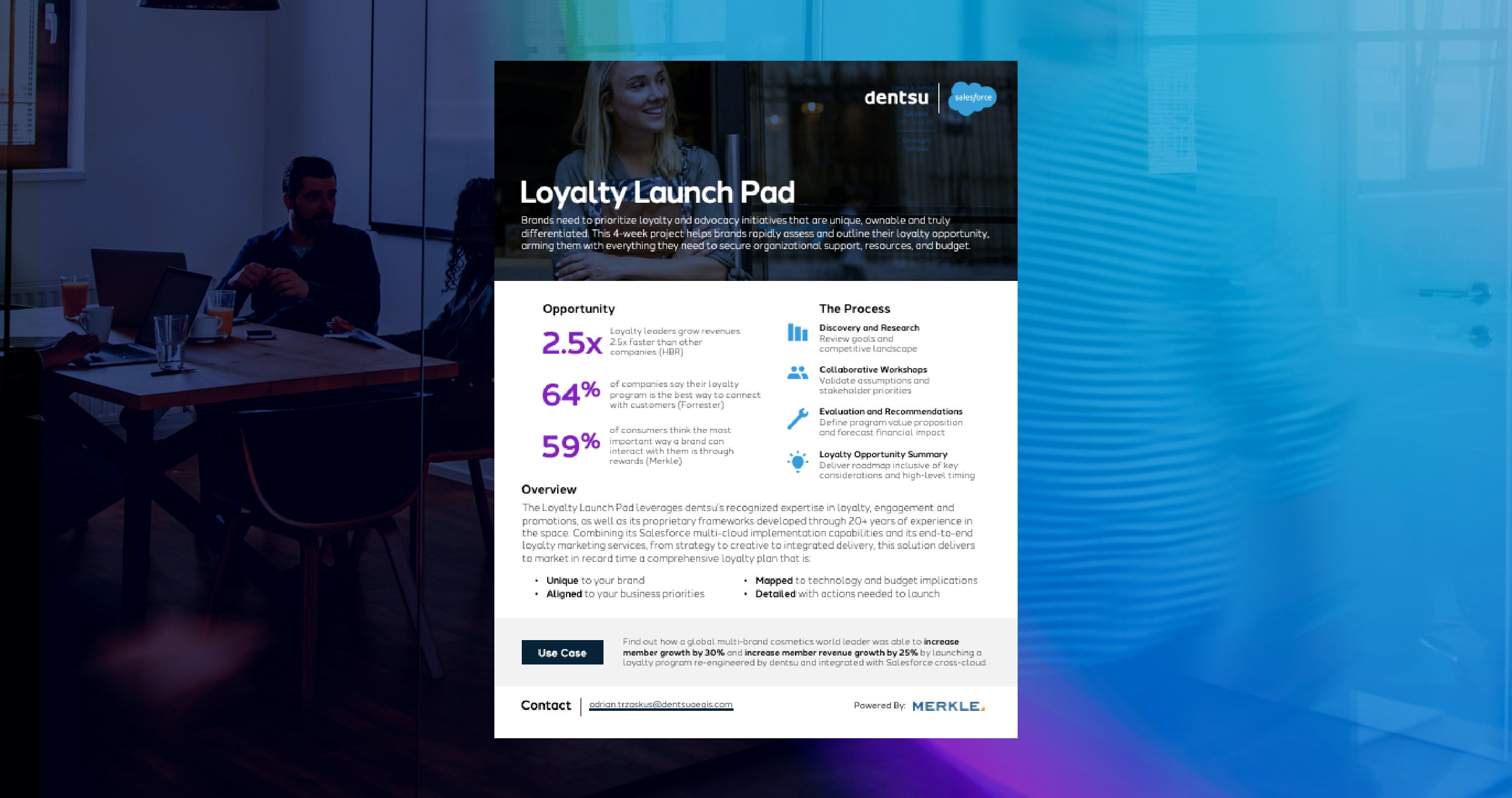 This solution leverages Dentsu’s Salesforce multi-cloud expertise and its experience in the loyalty and promotions space to equip businesses with a loyalty program design, as well as a strategy and a roadmap to launch it.
