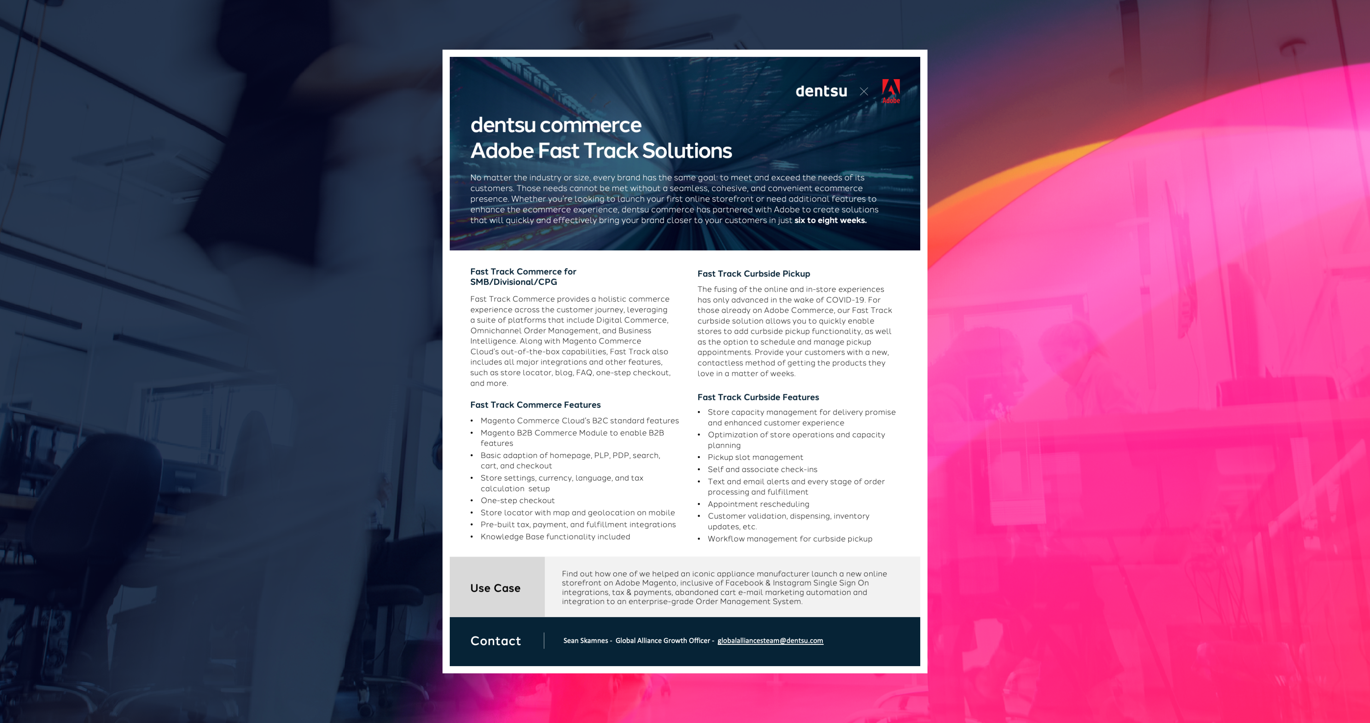Powered by Adobe Magento Commerce Cloud, our Fast Track Commerce solutions include Order Management and Business Intelligence to enable your brand to deliver a holistic transactional experience.