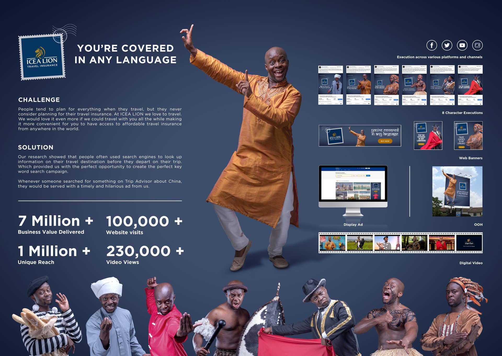 We took a seasoned traveller “Msafiri” and taught him 8 different languages to show our audience how far ICEA LION would go to cover them. Whenever someone search for something on I.e. China, they would be served a timely and hilarious ad from us about the misadventures that can happen on their trip.